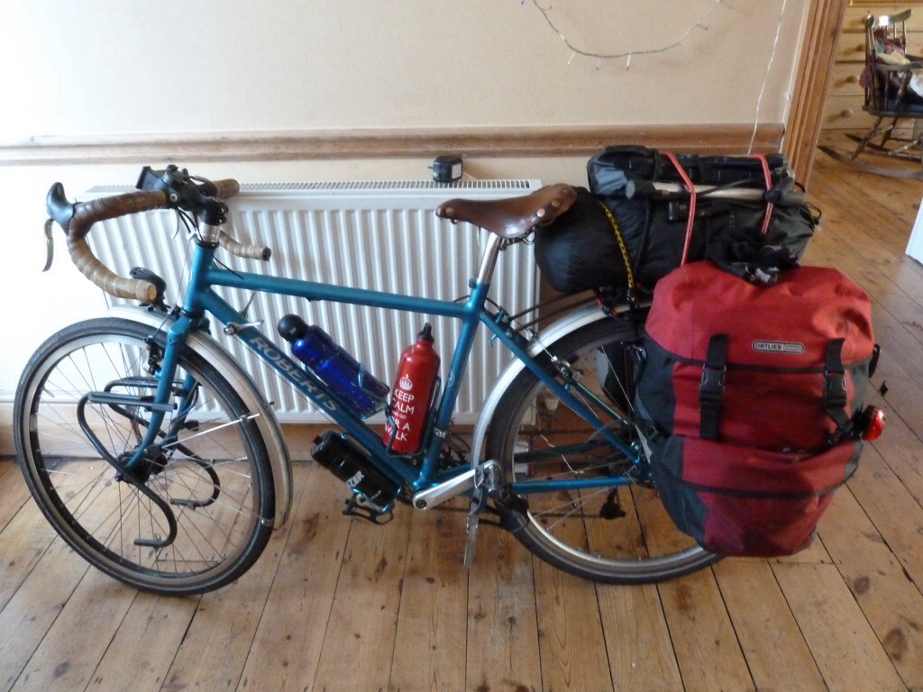 Still can’t persuade myself to use the front rack on the Roberts. I should really remove it..I have used it once in eight years. The thought of lugging four bags on and off the bike in order to access whatever form of mass transport I might have to use at some point on my trips, encourages very light packing. Which is fairly easy in summer. Winter trips are a little trickier when just a winter fleece and winter sleeping bag can fill one pannier on their own. But, ironically, now I finally have a bike fitted out to take that volume of kit, I am doing fewer winter journeys and feeling less like camping when I do them. Getting old, I guess.