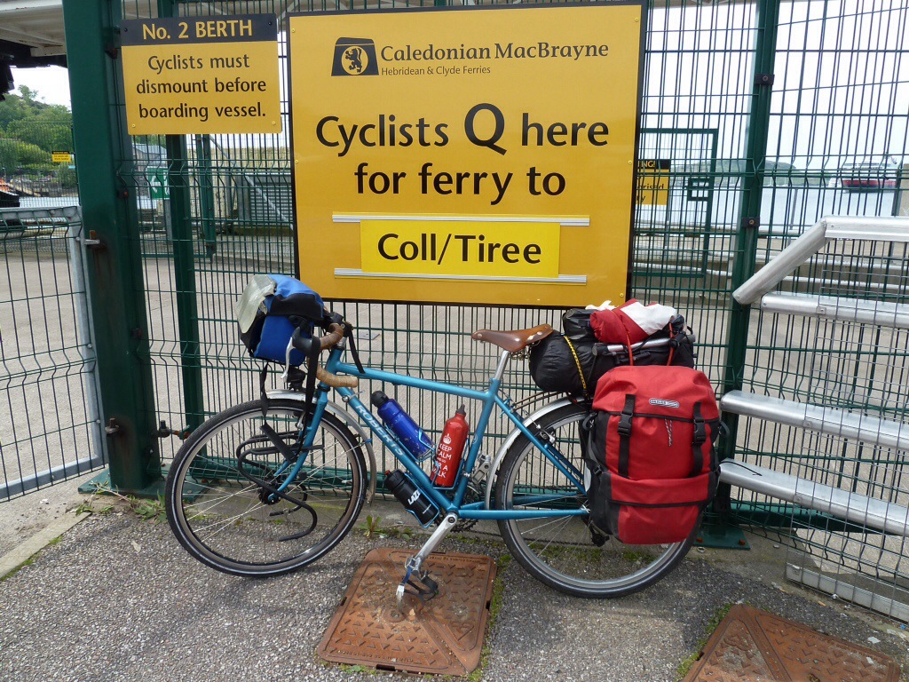 Hot, hot, hot. Well 22 degrees anyway…which is hot for this part of Scotland, especially in May. Standing waiting for the ferry to Coll, I had to dig my sunglasses out of my bar bag, the bright sea glare of the sun was beginning to hurt my eyes.